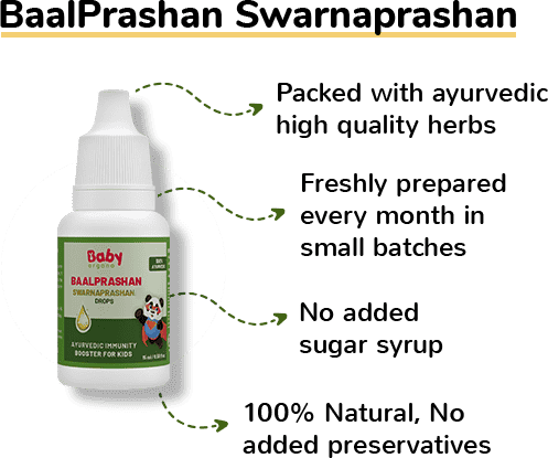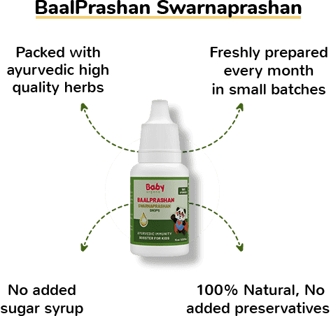 Baalprashan Swarnaprashan is specially formulated with herbs which can help the digestive process. These Ayurvedic Swarnaprashan drops contain Ayurvedic ingredients that can preserve digestion.