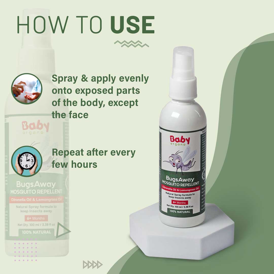 Keep pesky mosquito bites away, naturally and safely with BabyOrgano BugsAway Mosquito Repellent Spray. Specially formulated for babies and kids aged 6 months and above, this gentle yet effective spray offers plant-based protection with the power of Ayurvedic ingredients like Citronella, Lemongrass, and Lavender essential oils.