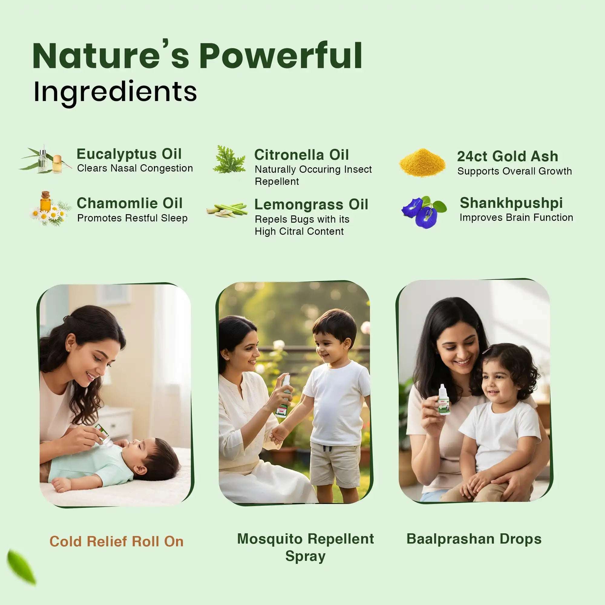 Kid's Overall Protection Combo for Kids| Swarnaprashan Drops + Mosquito Repellent Spray + Natural Cold Relief Roll-On