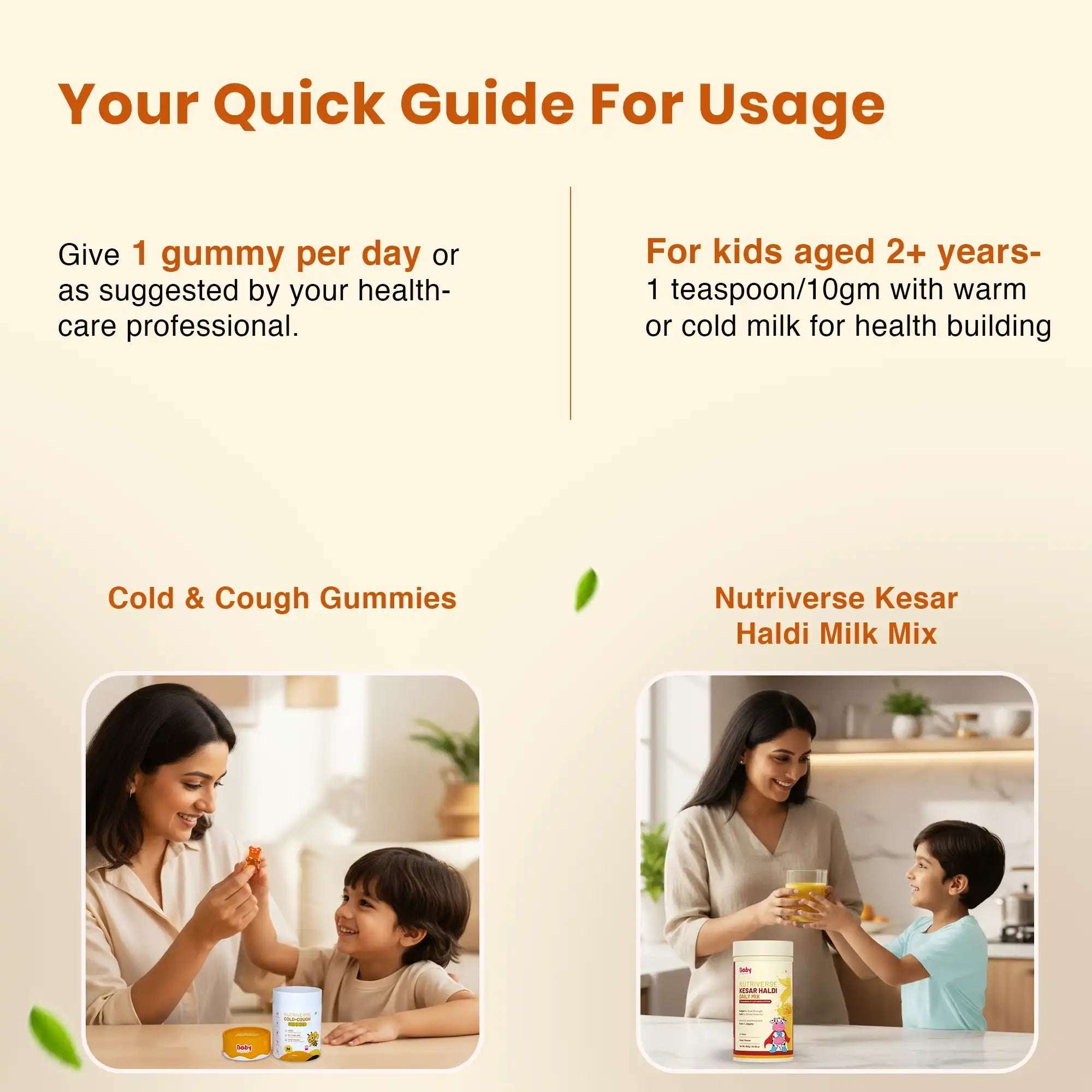 Cold & Immunity Shield Combo for Kids| Nutriverse Cold & Cough Gummies + Kesar Haldi Milk Mix