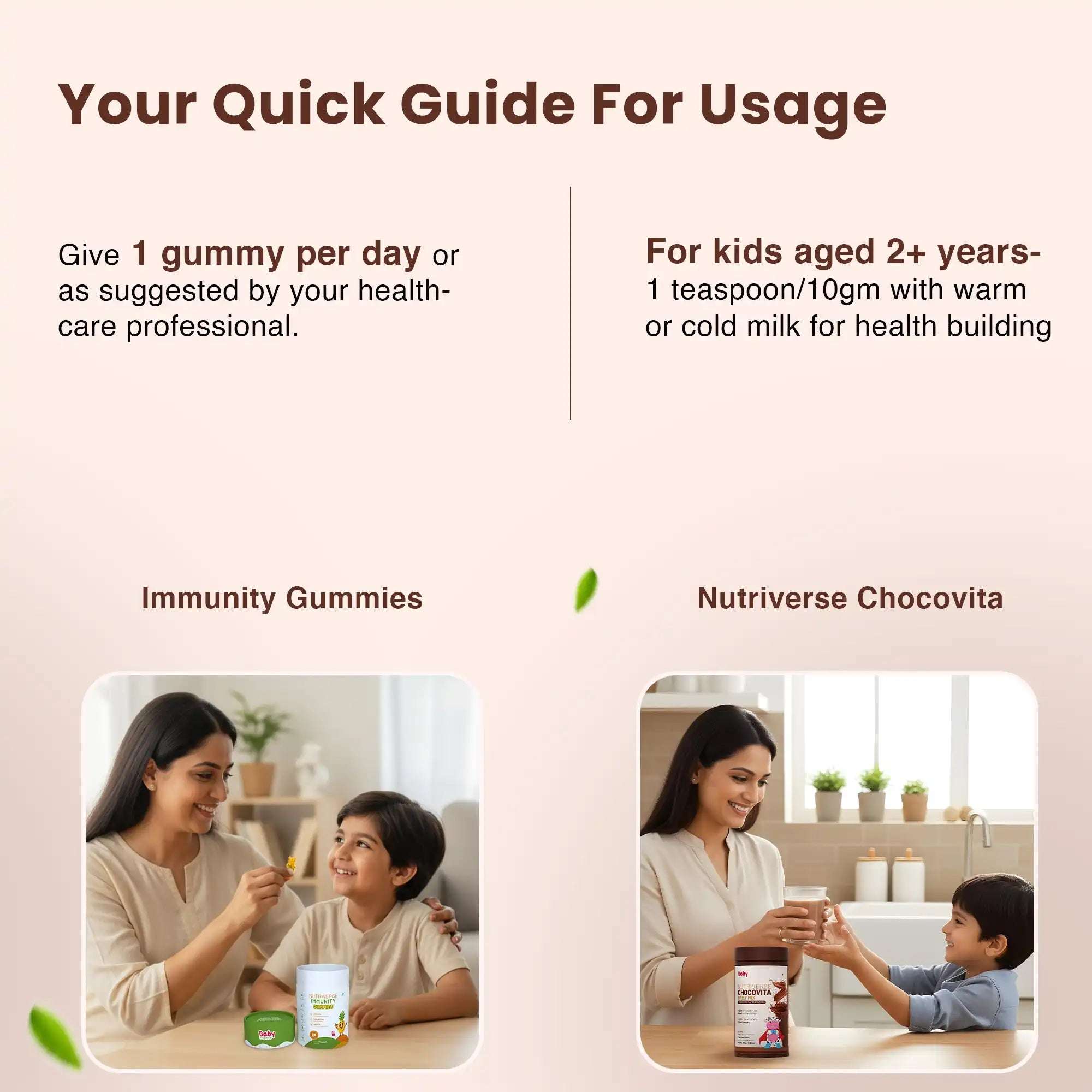 Growth & Immunity Booster Combo for Kids| Nutriverse Chocovita + Nutriverse Immunity Gummies (30 Gummies/Pack)