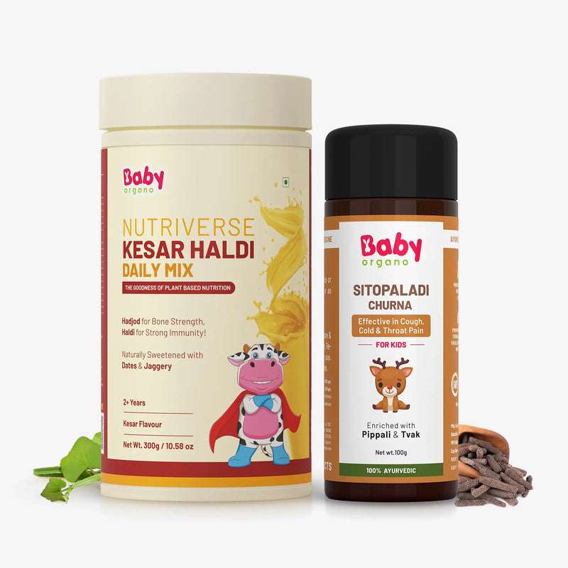 Immunity & Cold Relief Combo for Kids| Nutriverse Kesar Haldi Milk Mix + Sitopaladi Churna