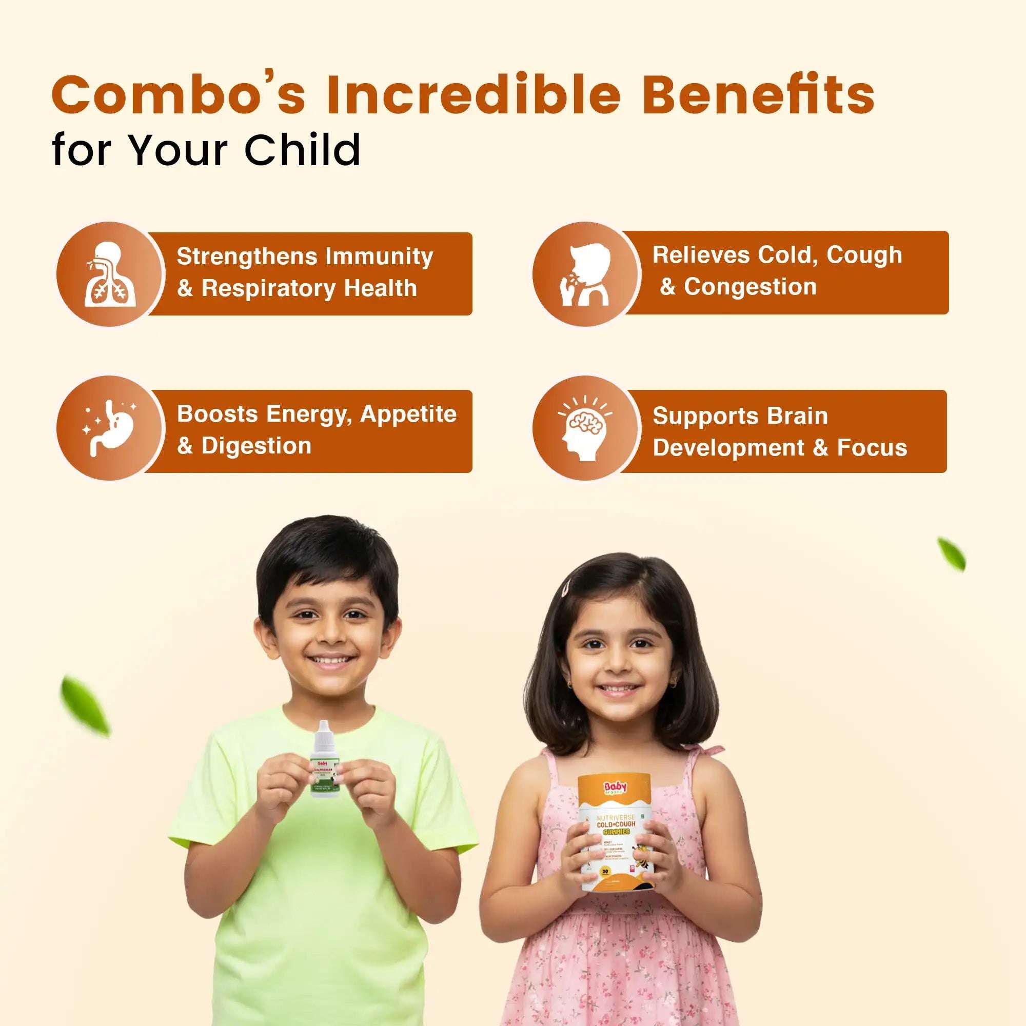 This powerful combo supports your child’s well-being from within, boosting long-term immunity while offering fast, natural relief during cough and cold.