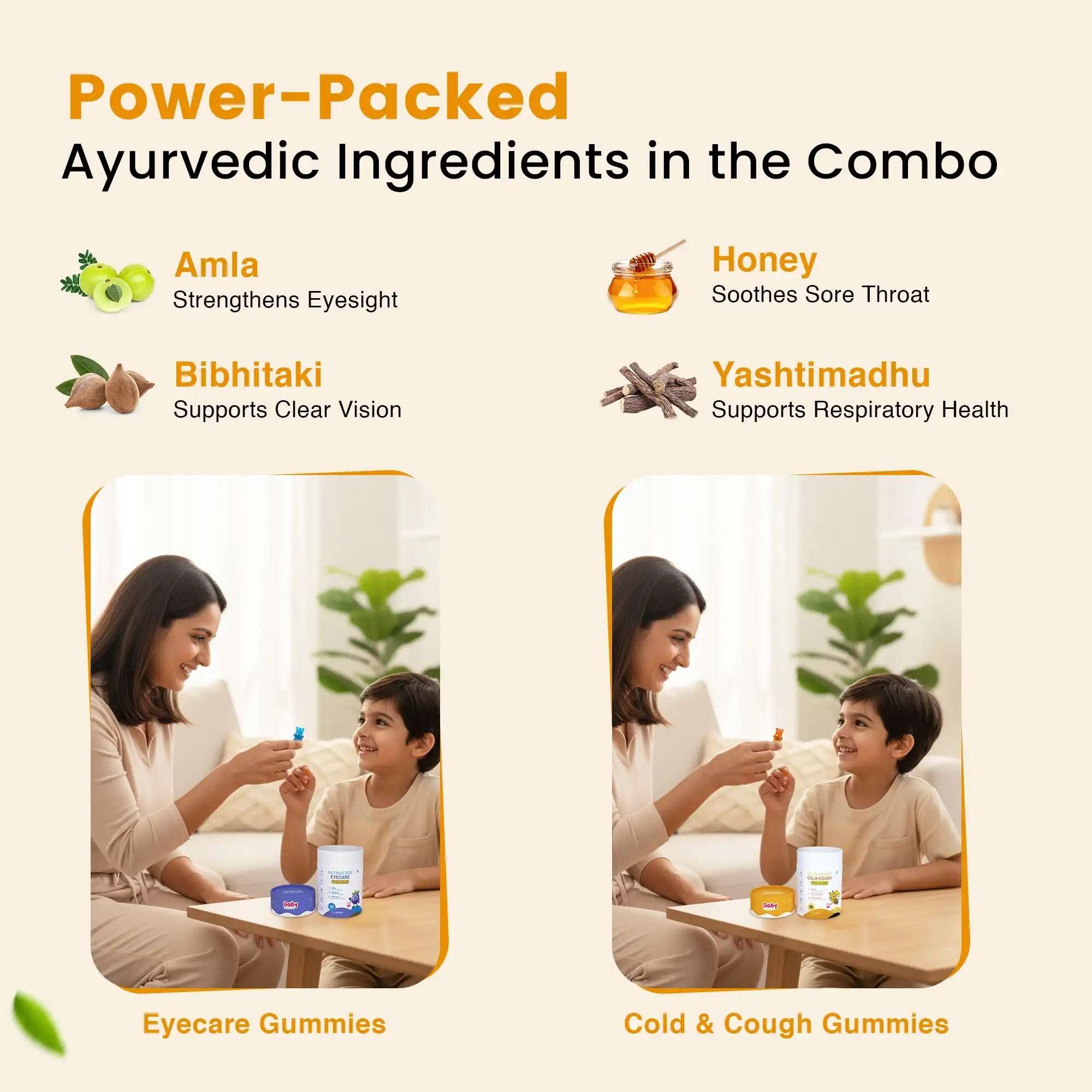 Vision & Wellness Combo for Kids| Nutriverse Eye Care Gummies + Nutriverse Cold & Cough Gummies (30 Gummies/Pack)